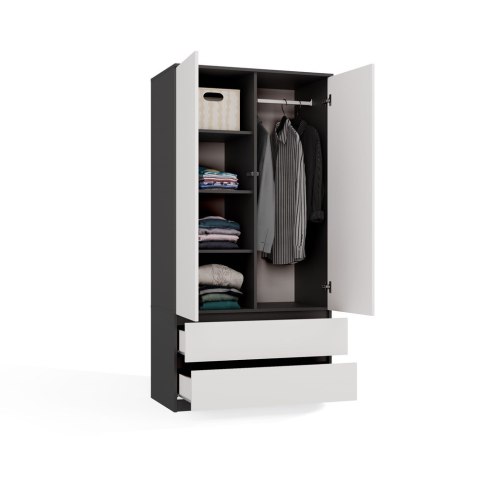 DUŻA SZAFA DO BIURA SYPIALNI MALWA 90CM ANTRACYT / BIAŁY MAT