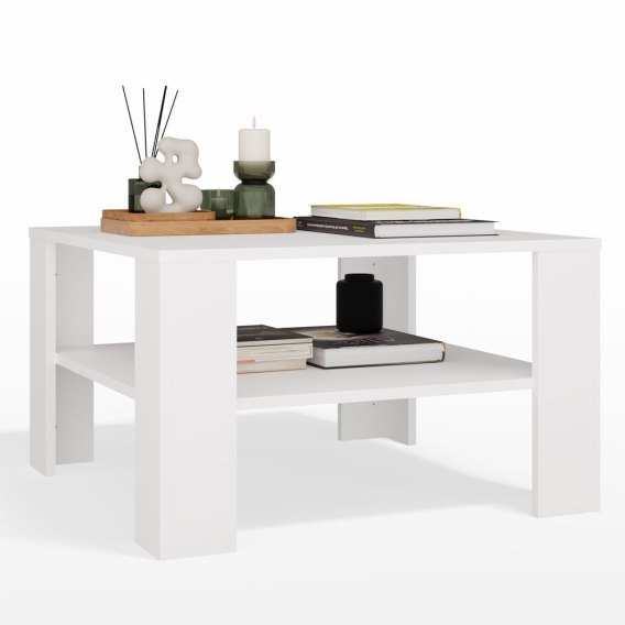 NOWOCZESNA ŁAWA STOLIK KAWOWY Z PÓŁKĄ POD BLATEM SQUARE BIAŁY MAT